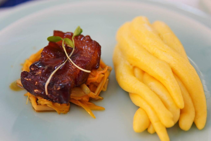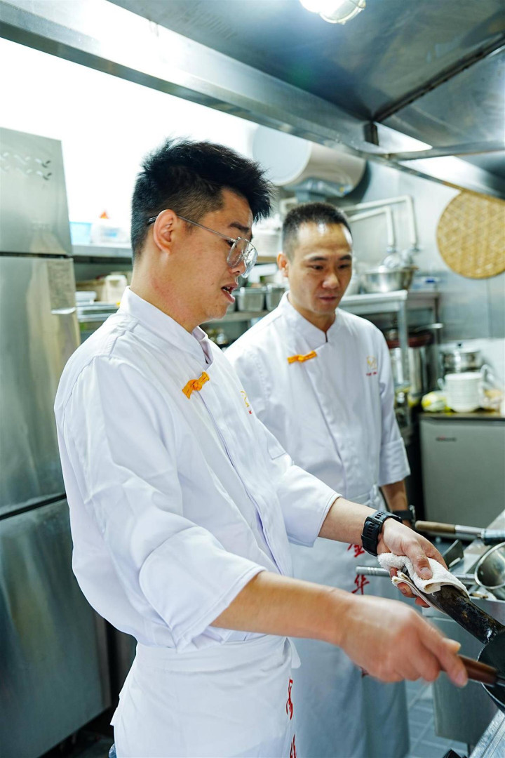 从拉菜、洗菜、备料、打荷、切配……一步步,江澍靠近心中的目标,那便是灶台烧菜的地方。“我们这个行业就靠一点一滴积累,不可能一蹴而就的。”时至今日,厨师班的大部分同学都已转行,始终如一的他如愿戴上了颐和君悦休闲度假酒店行政总厨的高帽。因为同在市区,他与师爷黄良涛走得更近了,这次两头乌的菜品主要就是江澍和师爷黄良涛敲定的。“菜品主要朝着健康饮食的方向,贴近年轻人的口味,考虑每道菜不会太油腻,同时搭配红薯、麦仁等,既要美味又要养生。”