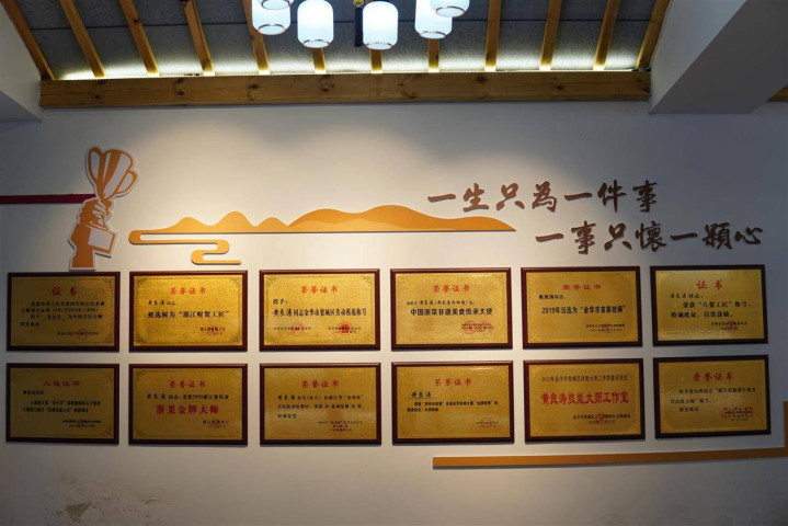 师傅成了师父,胡雄蒋跟着黄良涛从金华到义乌,如今也开创了自己的一番餐饮天地。胡雄蒋知道师父对金华菜,特别是两头乌菜品有着特殊的情结。“以前去杭州考察学习,师父吃东坡肉都要吃两块,就为了汲取别家所长,为金华两头乌菜品找到更合适的烹饪方式。”